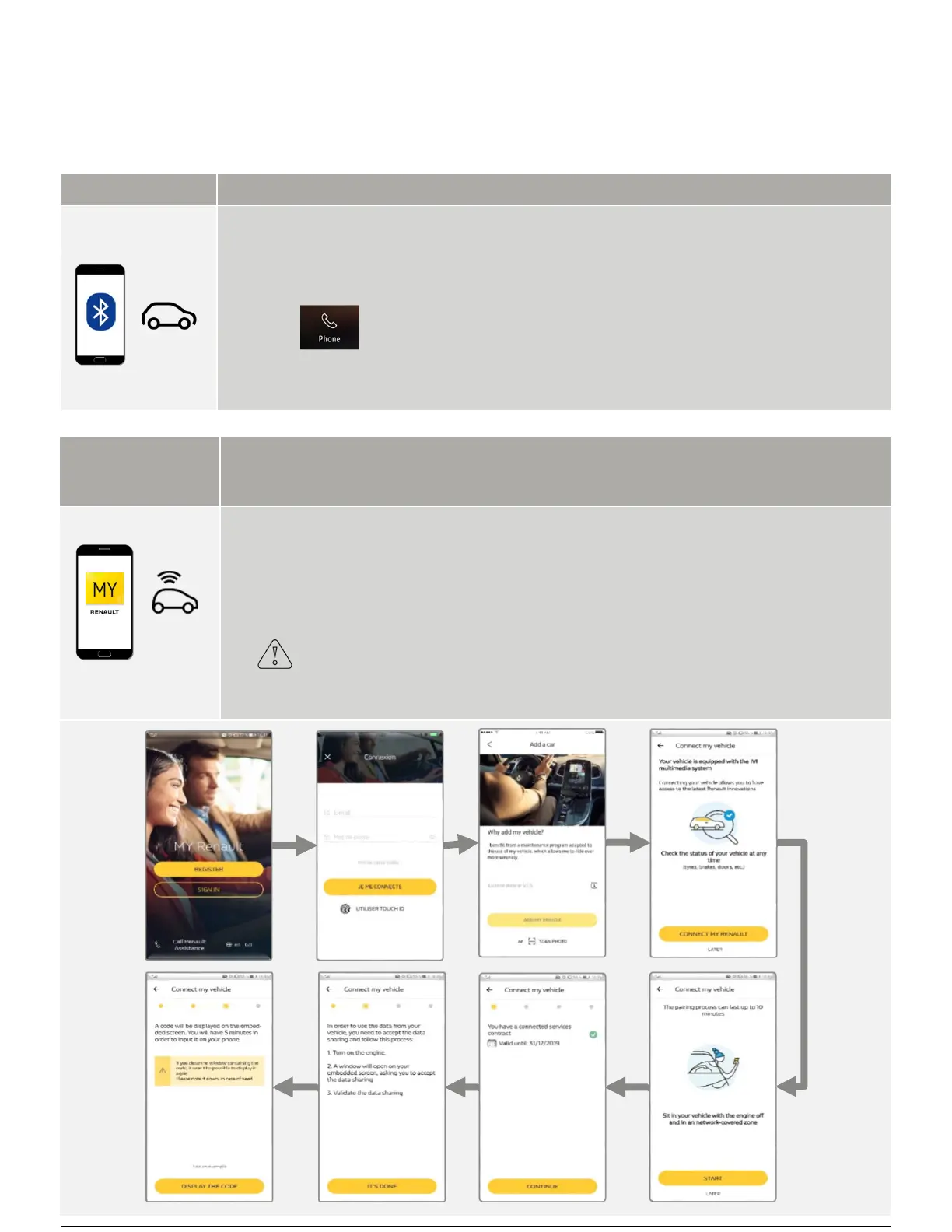 The MY Renault smartphone app lets the customer consult information concerning his vehicle, such as: