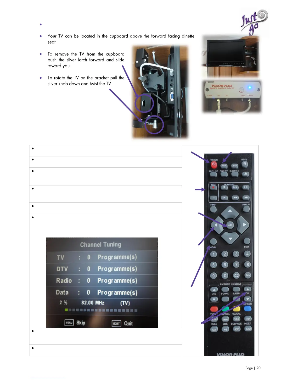 Please follow the guidlines below to use the TV system onboard.