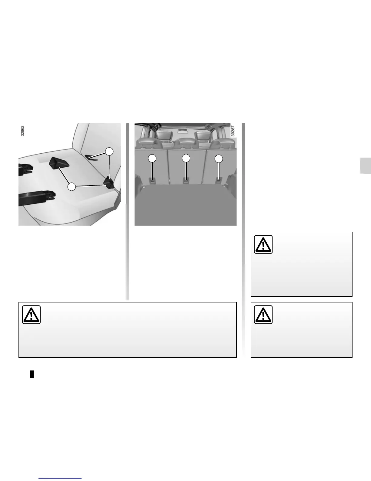 belt or other objects to these anchorage points. Check that nothing is ob-