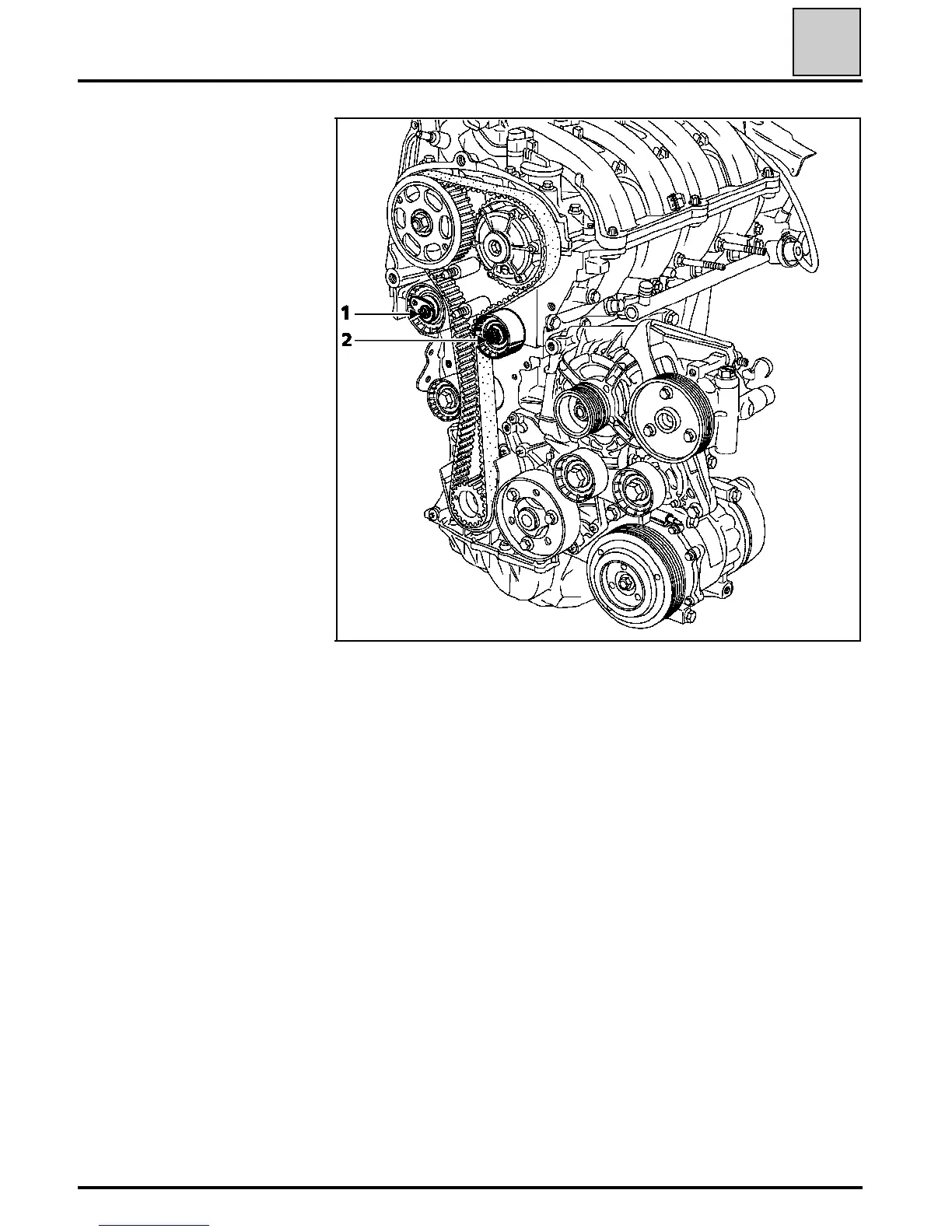 Slacken the tensioner nut (1).