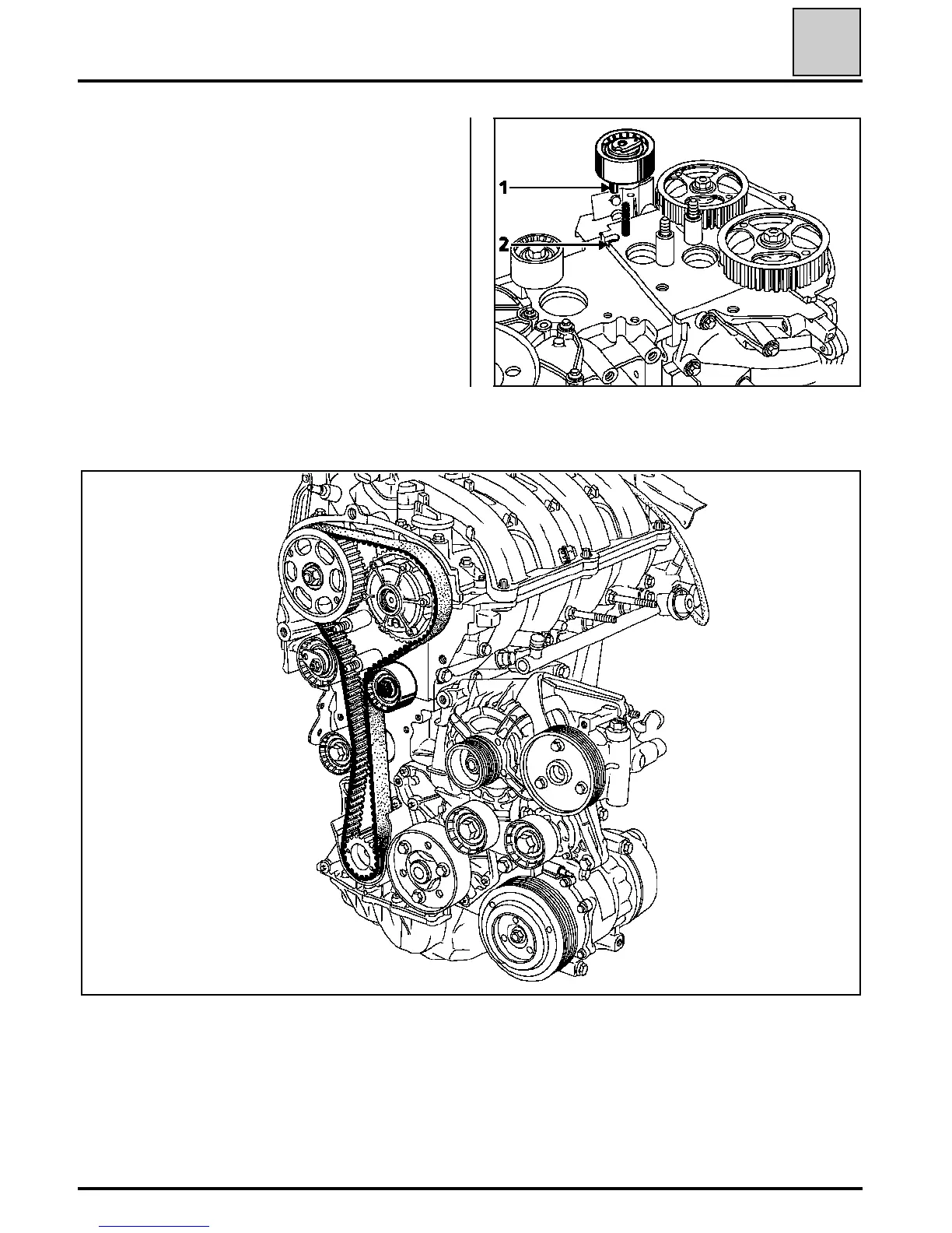 Check that the tensioner lug (1) is correctly posi-