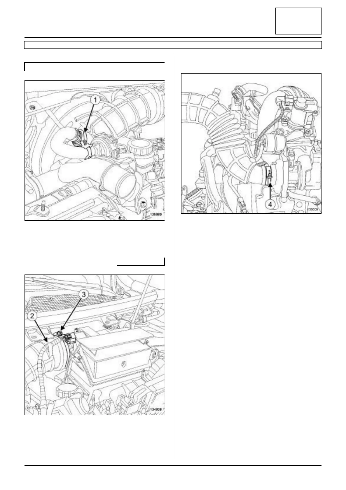a Loosen the clip (3) of the air filter unit air outlet pipe