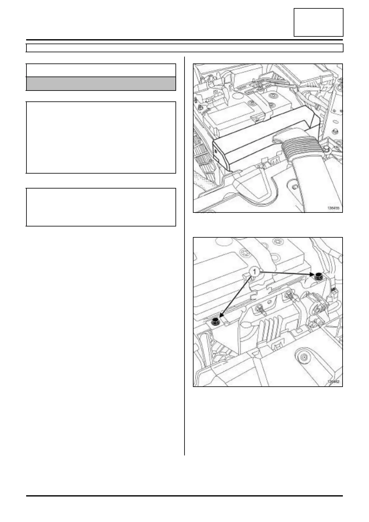 a Remove the bolts (1) of the petrol injection computer