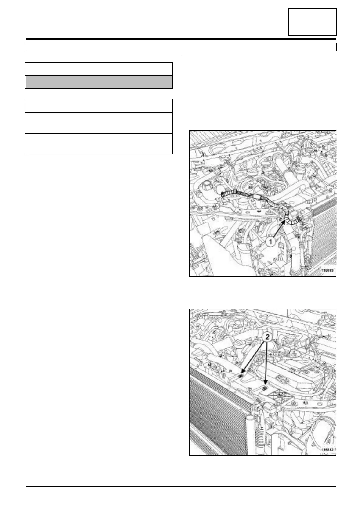 a Remove the engine wiring channel bolts (2) from the