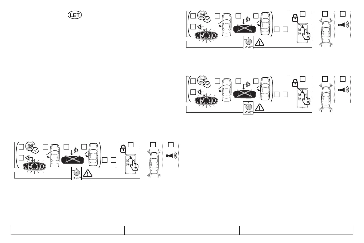 IESLĒGTS (ON) un/vai nobloķējot transportlīdzekli laika intervālā, kas nedrīkst pārsniegt 50 sekundes. Tiek izdots