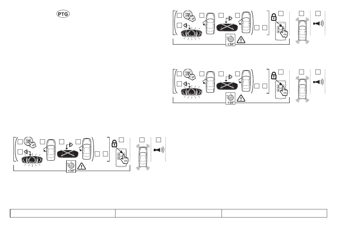 n Se o veículo tiver o capô aberto no momento do fecho do carro, o sistema emite um alerta através de 3 sinais acústi-