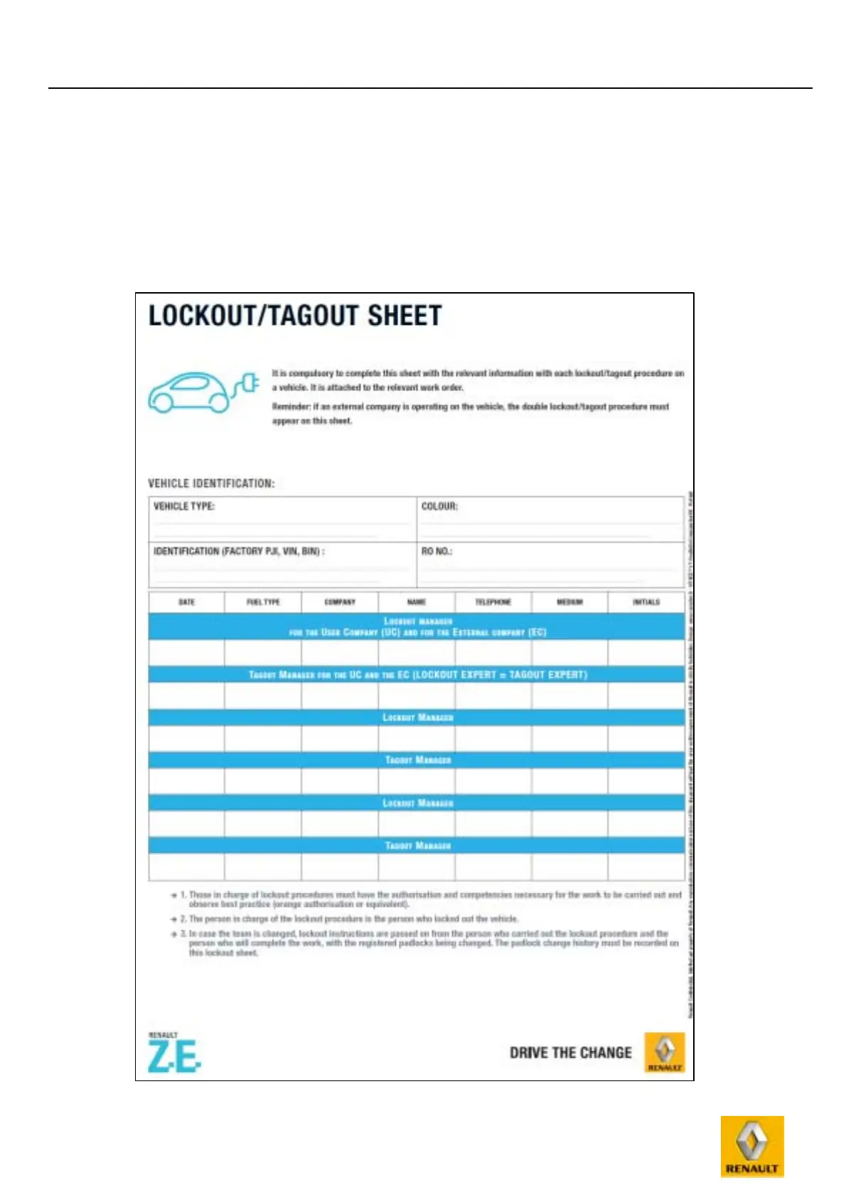 Reminder: if an external company is operating on the vehicle, the double lockout/tagout procedure must