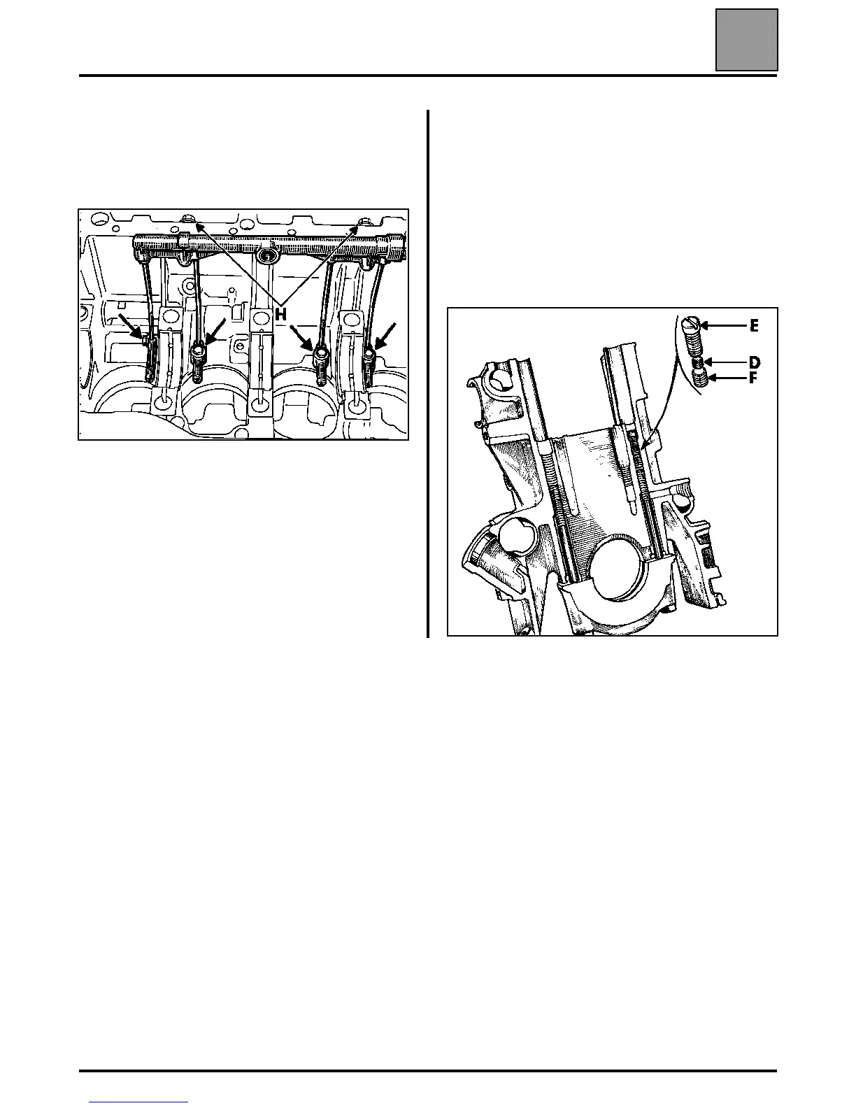 bolts (E) and the bearing bolt, oil filter side of bearings