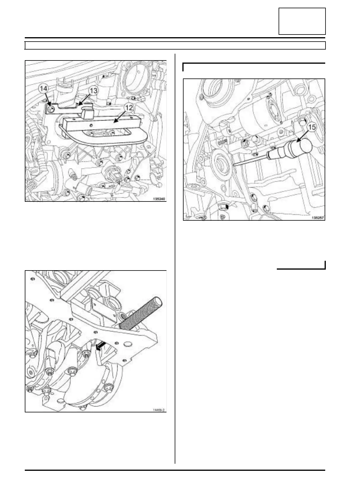 -a lifting eye bolt (14) to secure the timing tool (Mot.