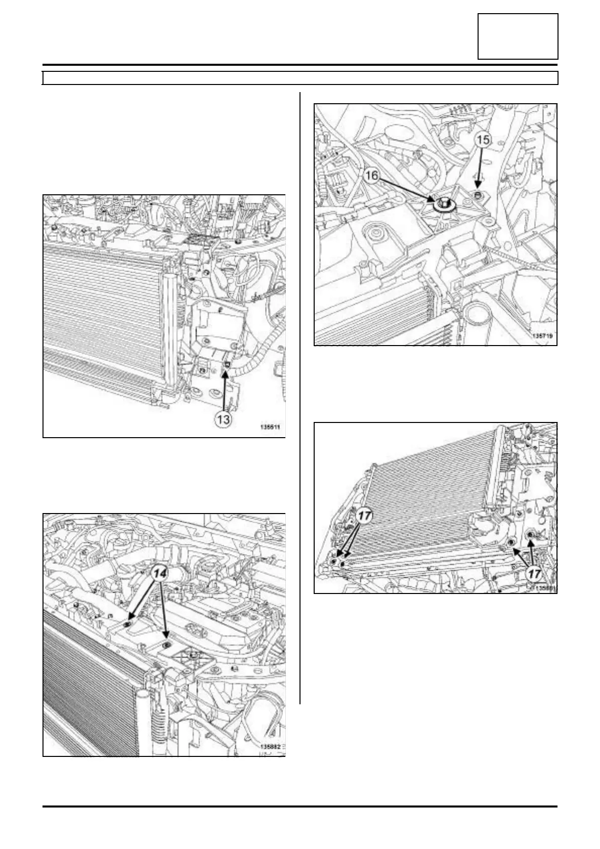 a Remove the lower bolts (17) from the front end pa-
