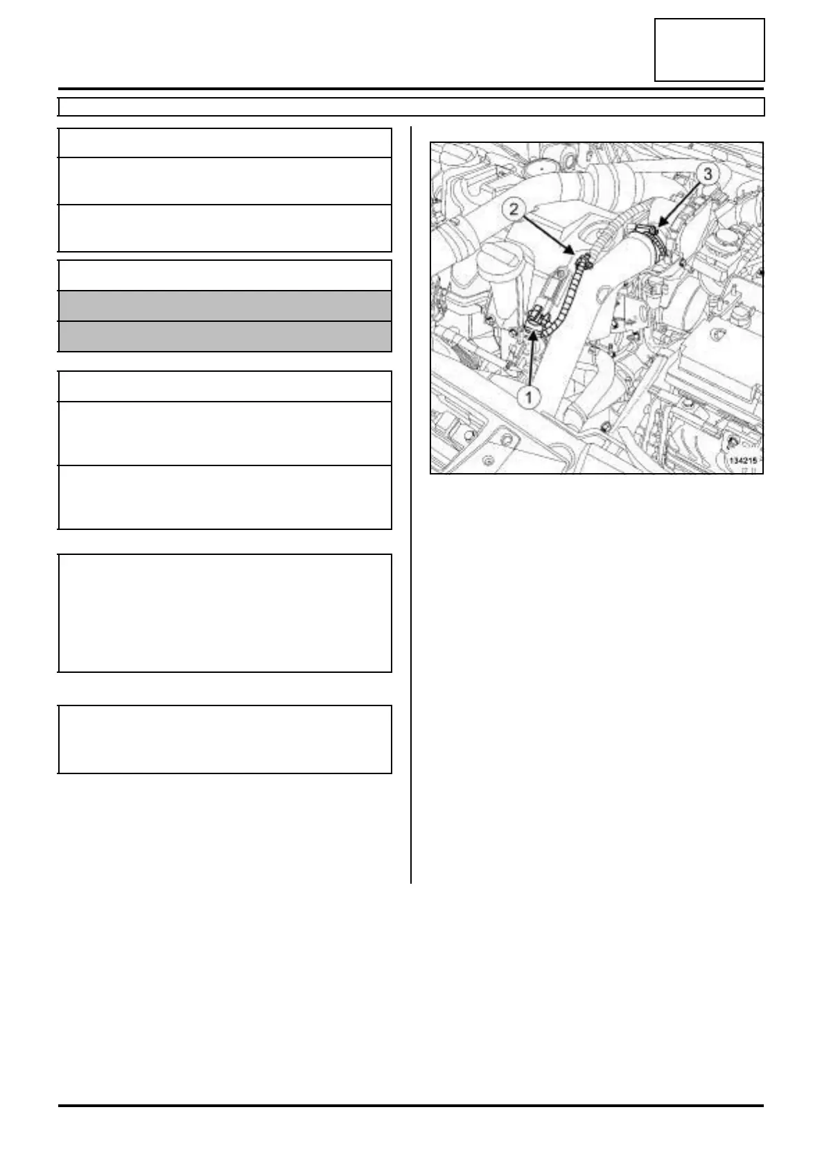 a Loosen the clip (3) of the intercooler air outlet pipe