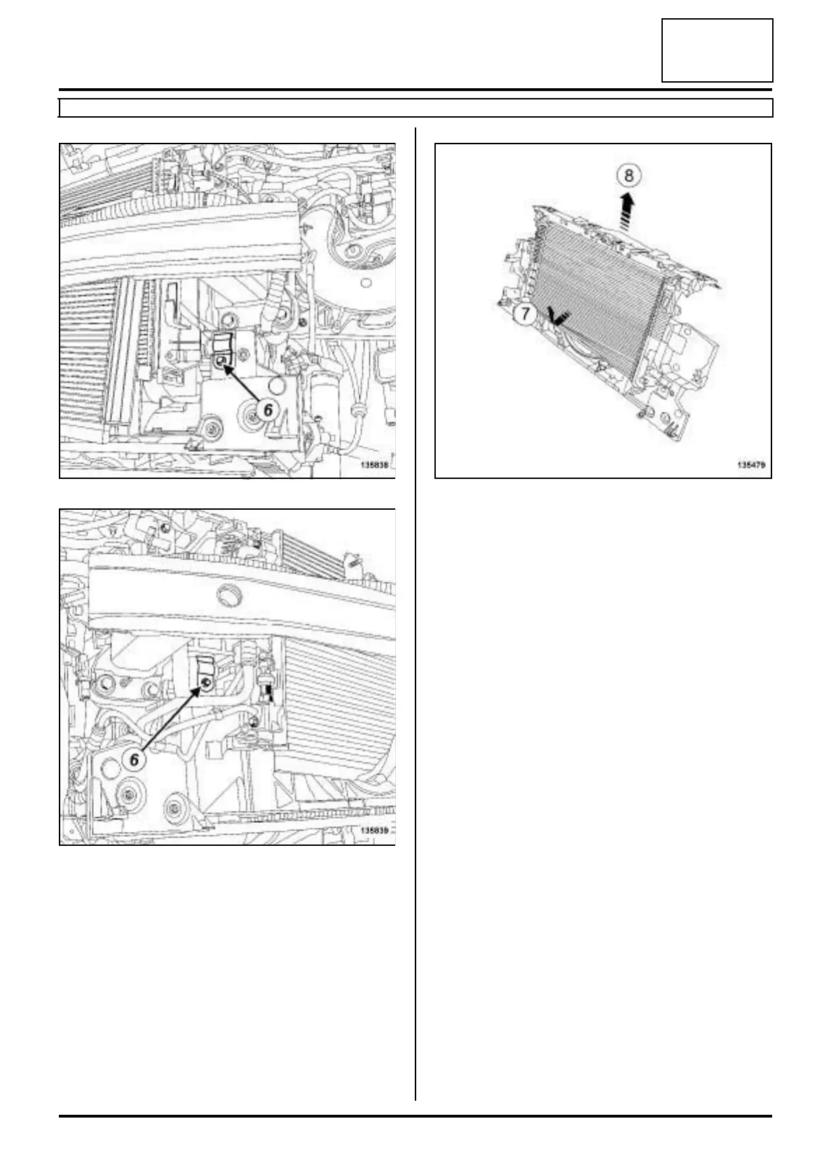 -the retaining bracket bolts (6) on the cooling radia-