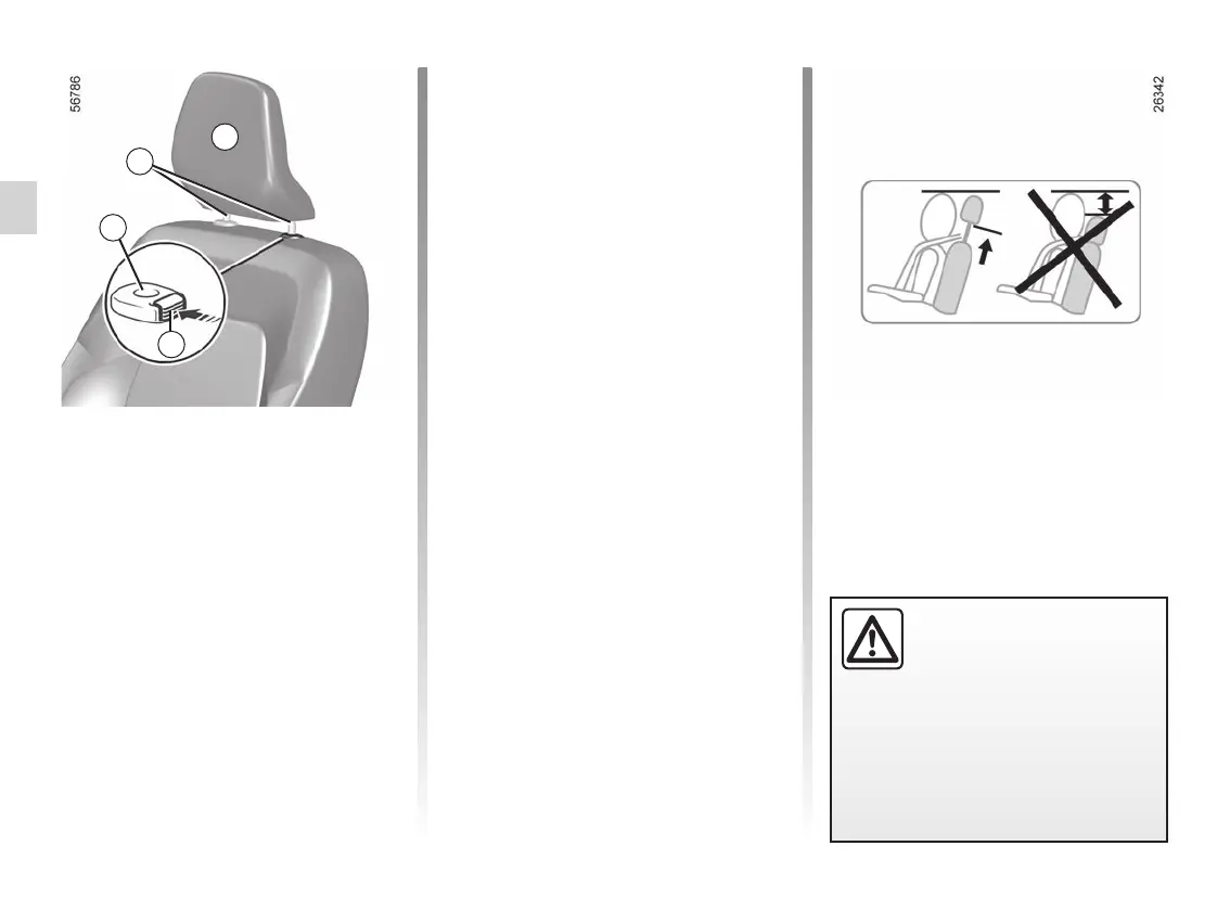 Press button 3 and lift the headrest to