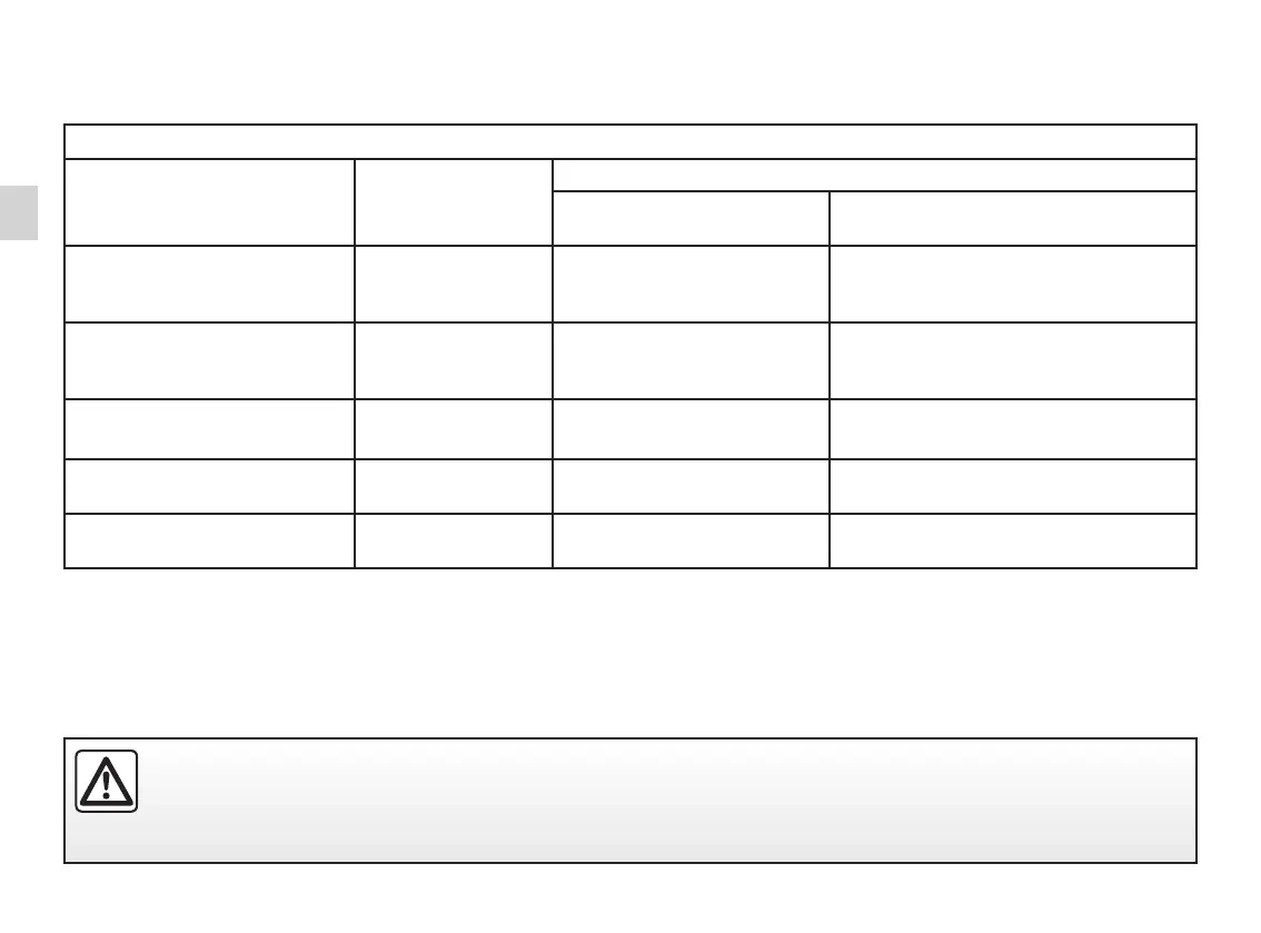 The table below summarises the information already shown on the diagram on the previous page, to ensure the regula-