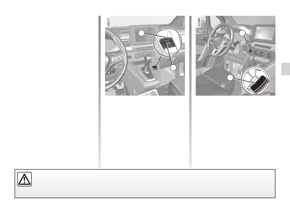 Before leaving the vehicle, check that the electronic parking brake is fully applied. Warning light 3 on switch 4 and