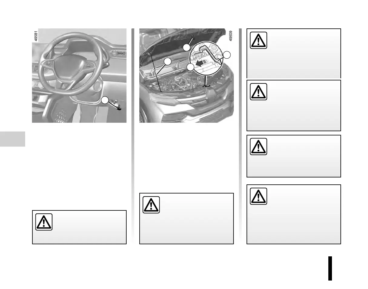 To open the bonnet, pull the knob 1.