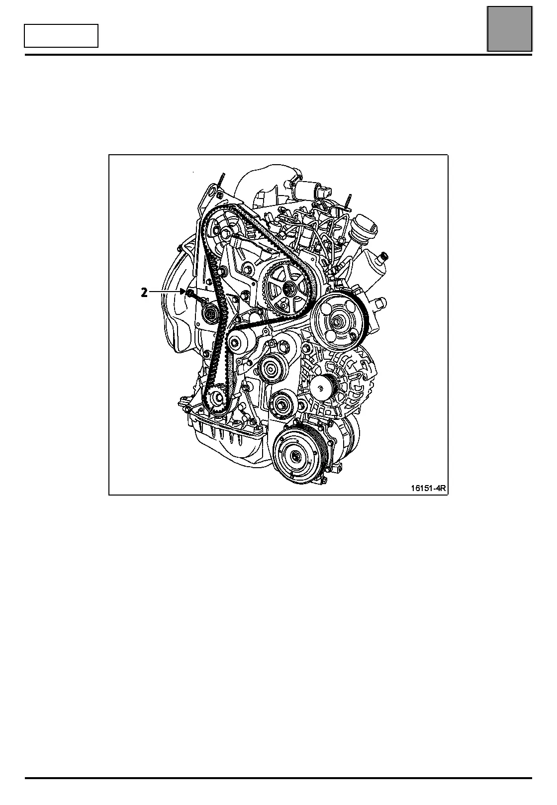 Place the tensioner against the belt by tightening bolt (2) on the tensioner