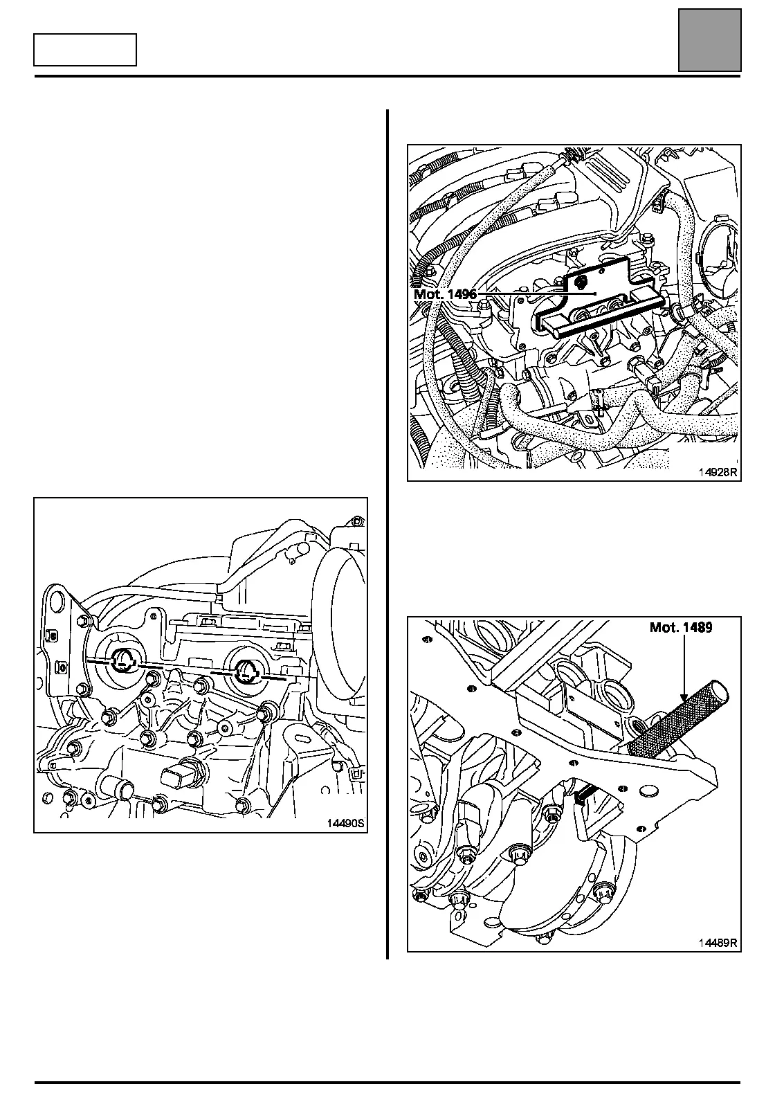 Fit tool Mot. 1496, on the end of the camshafts.