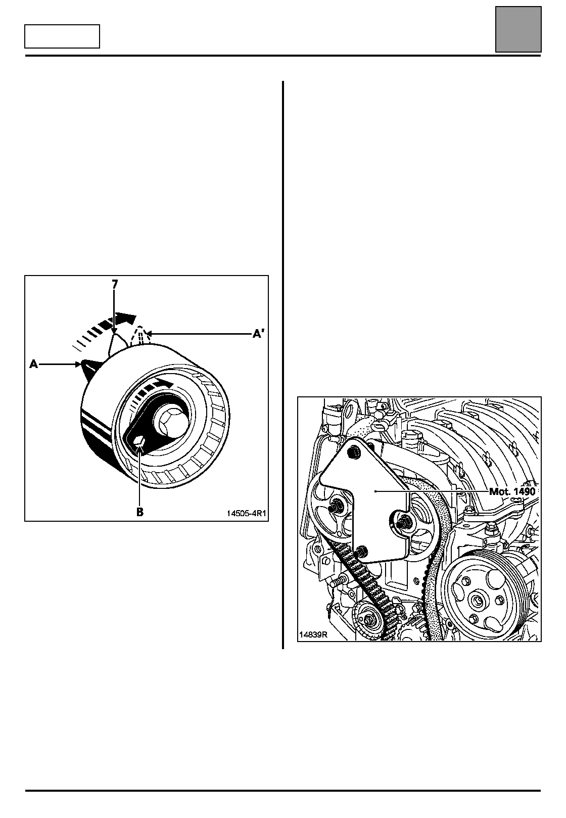 Fit the camshaft pulley locking tool Mot. 1490 using