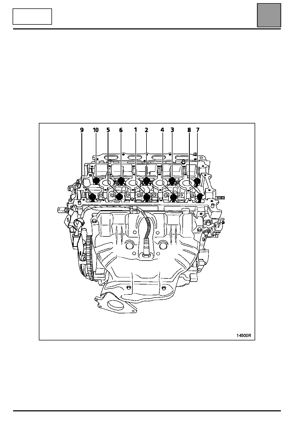 Check that all the bolts are correctly tightened to 2 daNm then angle tighten (bolt by bolt) by 165° ± 6° (F4P engine)