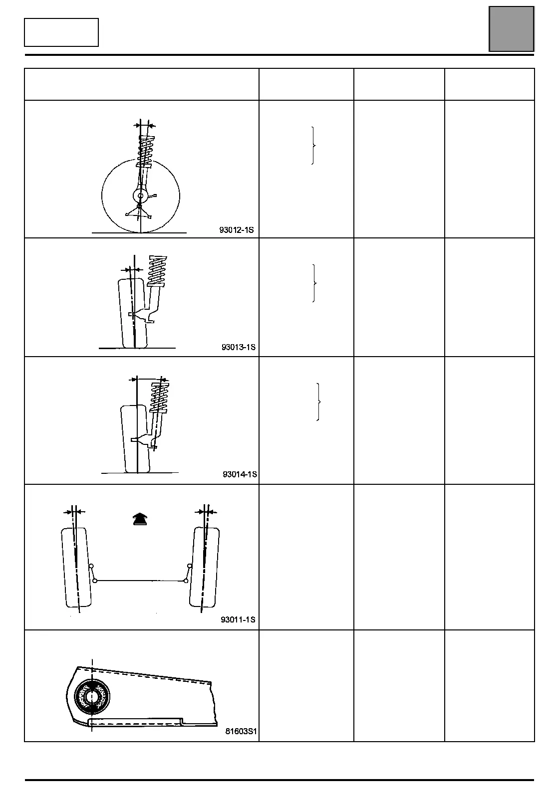 Renault LAGUNA 2000 - Front axle angle checking values (BG0 G with 17 tyres)