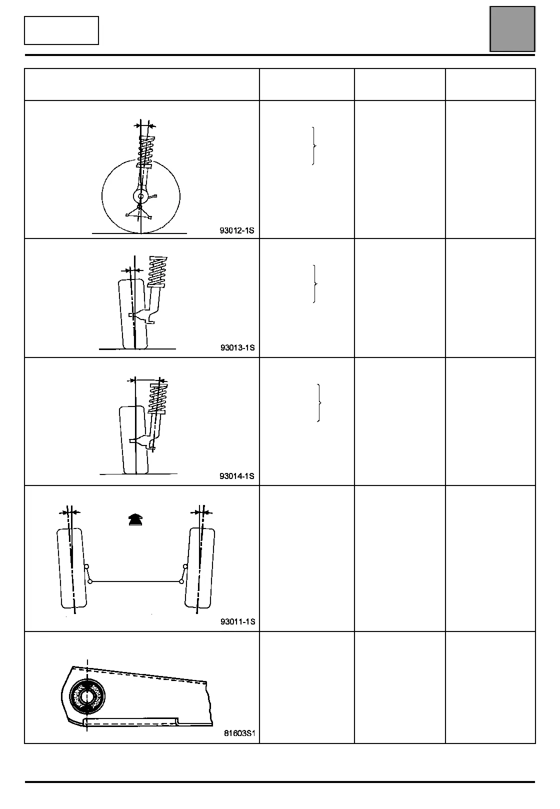 Renault LAGUNA 2000 - Front axle angle checking values (BG0 R with 17 tyres)