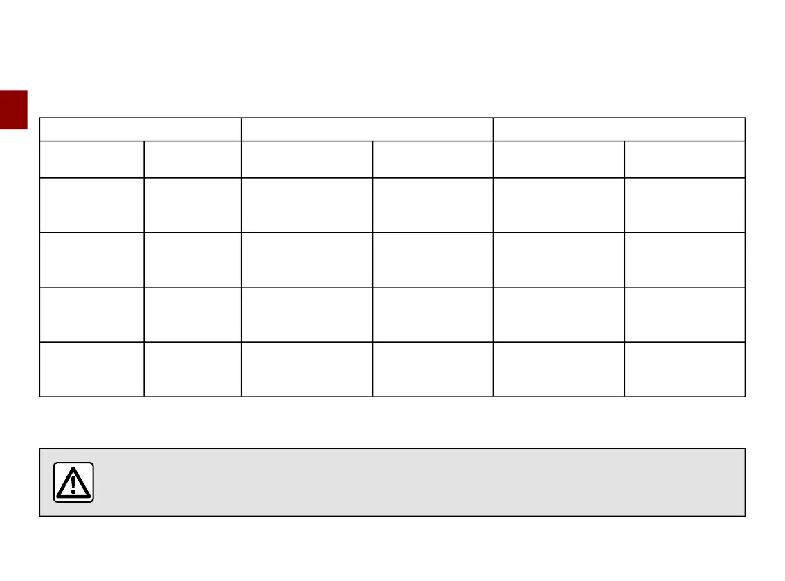 The table below summarises the information already shown on the previous diagram in order to ensure the regulations