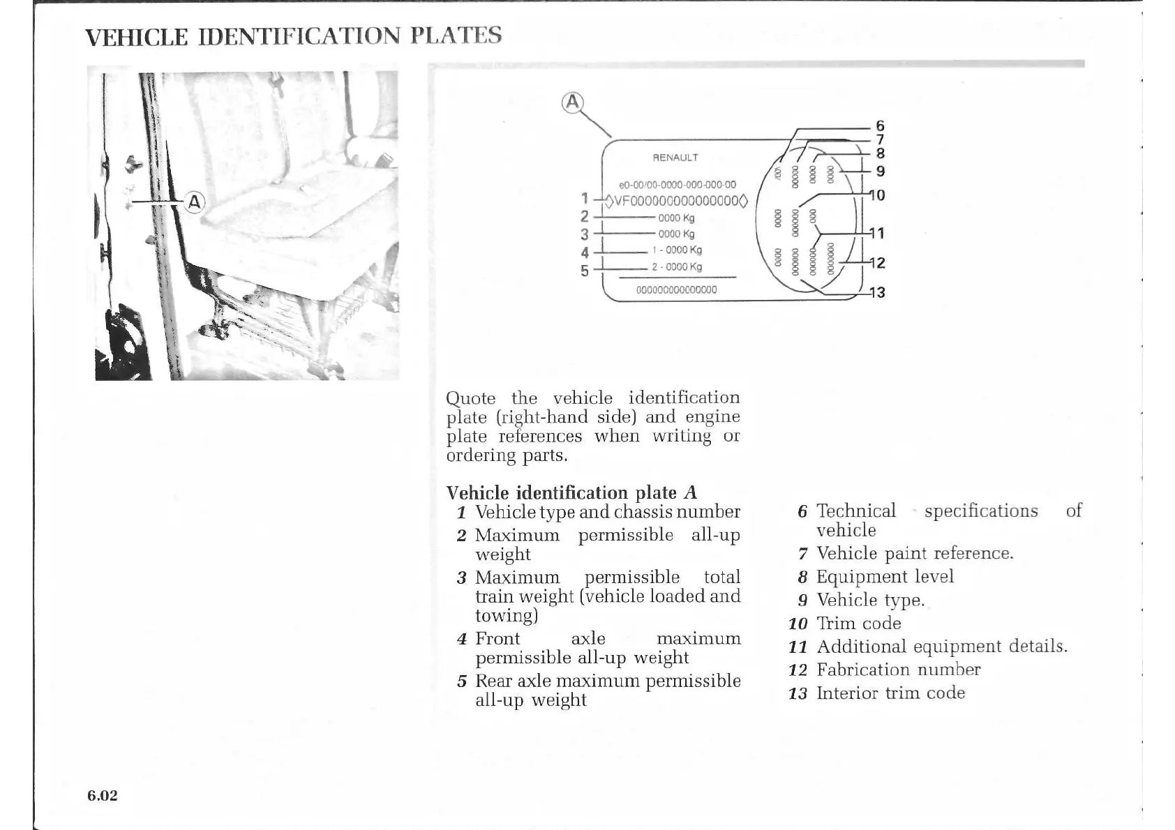 Renault Master Van 2004 - Vehicle Identification Plates