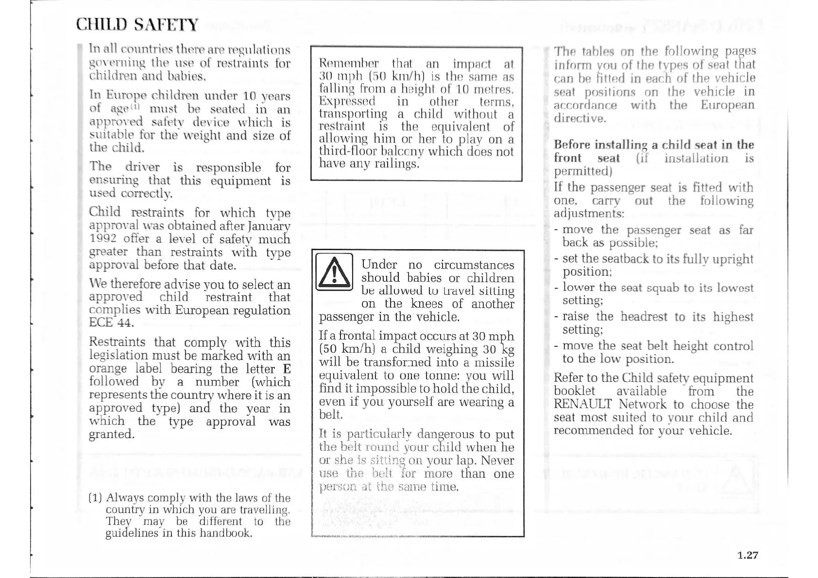 Renault Master Van 2004 - Child Safety and Seat Installation