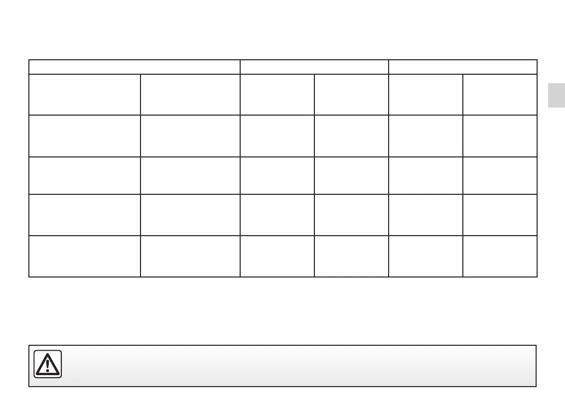 The table below summarises the information already shown on the diagram on the previous page, to ensure the regula-