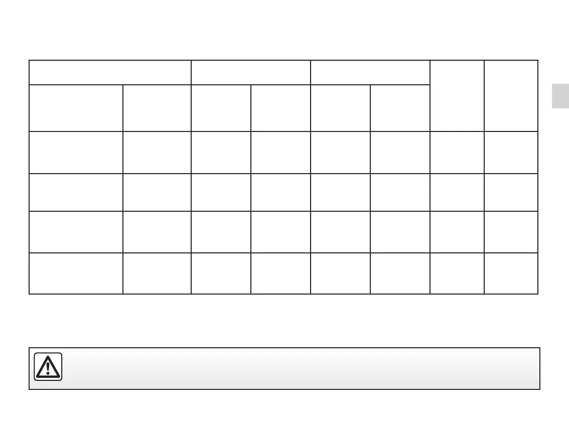 The table below summarises the information already shown on the diagram on the previous page, to ensure the regula-