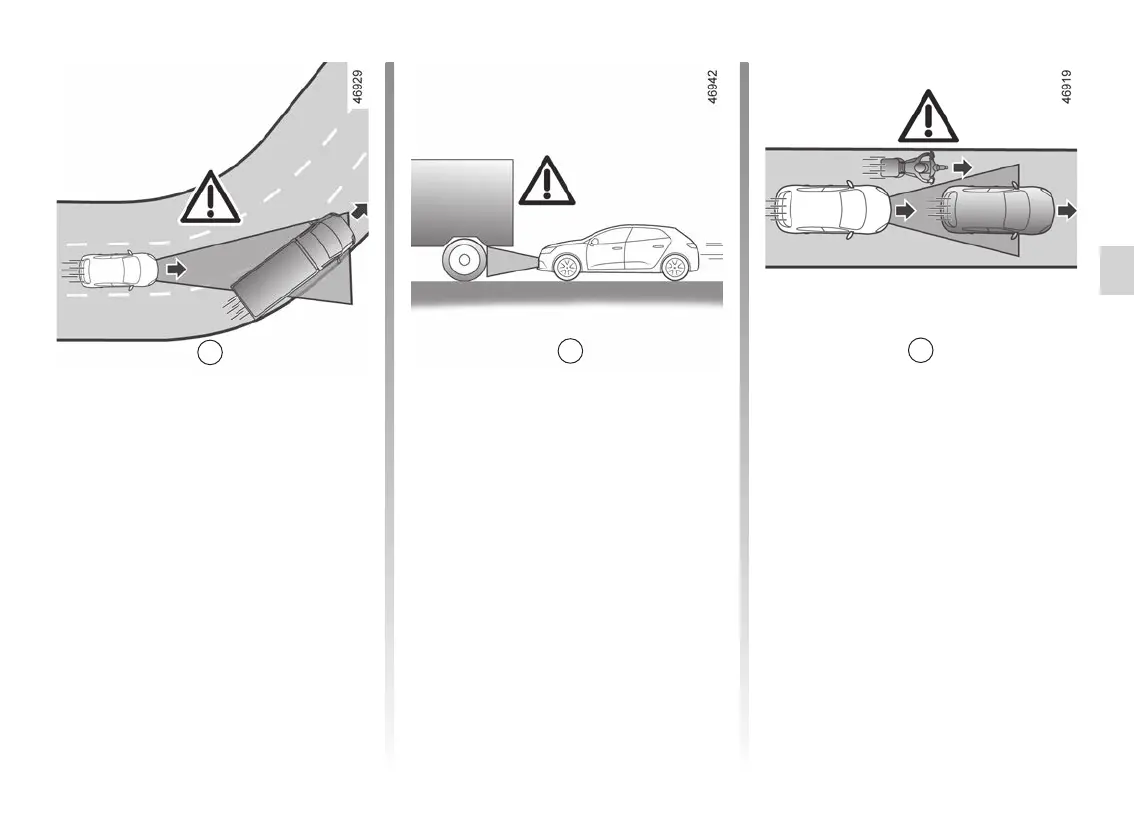 and radar detection areas when driving