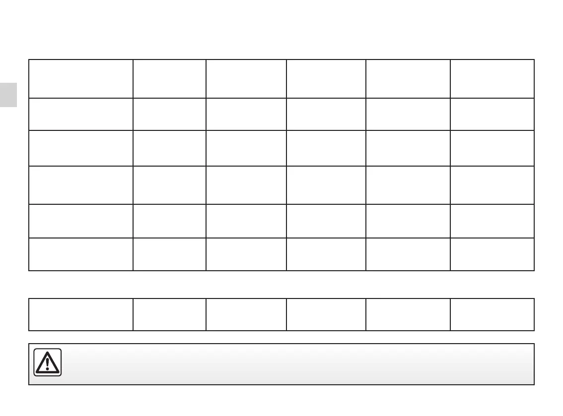 The table below summarises the information already shown on the diagram on the previous pages, to ensure the regula-
