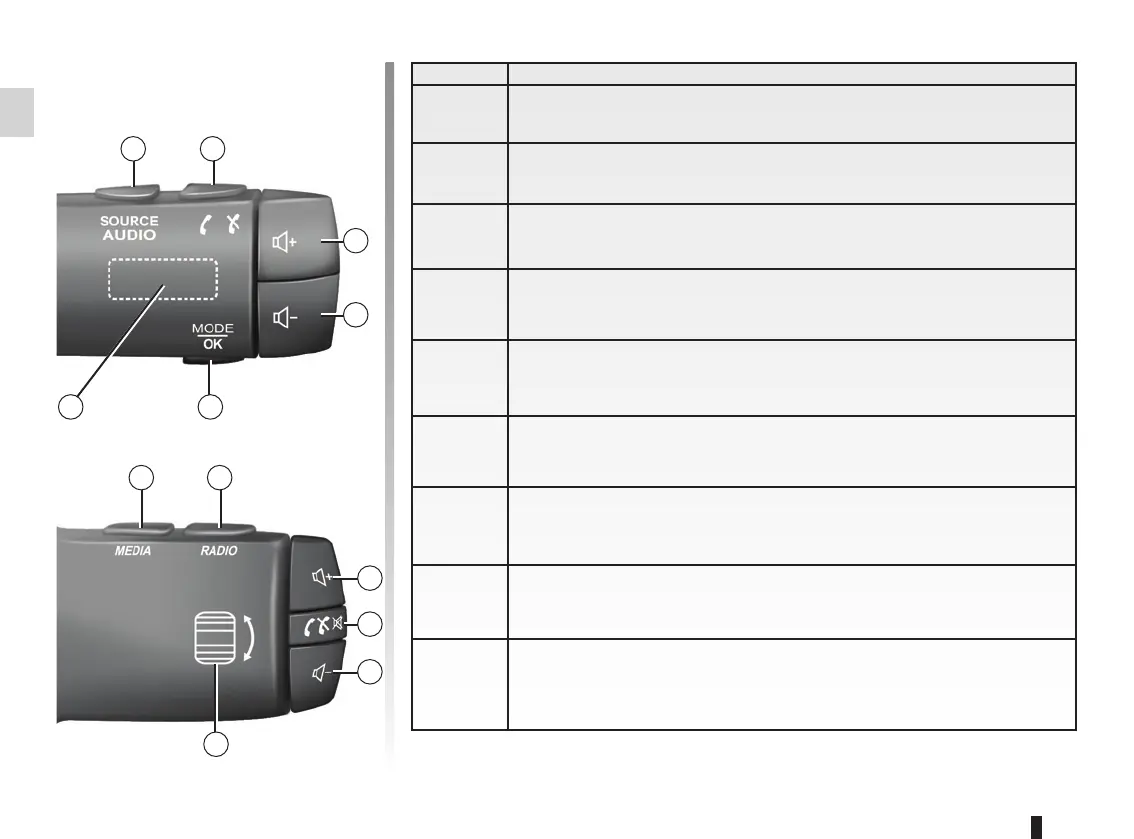 28 Change radio mode (preset/list/frequency) (depending on the vehicle).