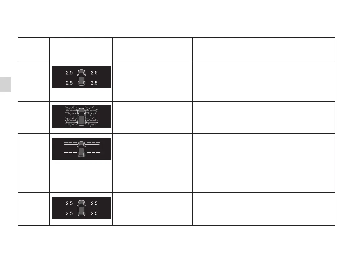 The table below shows the possible messages related to the tyre resetting procedure.
