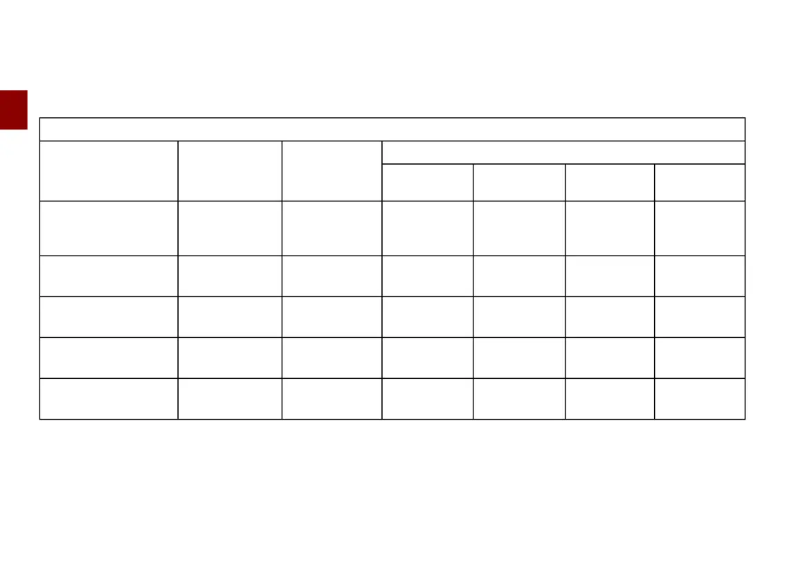 8-seater Combi/Bus version: installation table