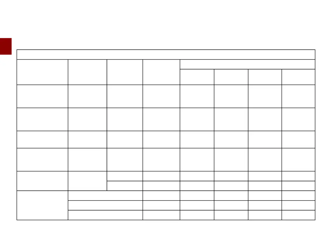 8-seater Combi/Bus version: installation table