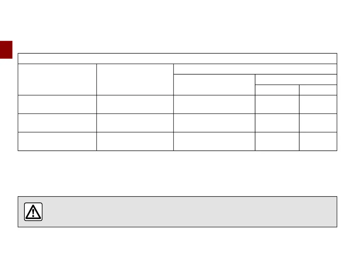 The table below summarises the information already shown on the previous diagram in order to ensure the regulations