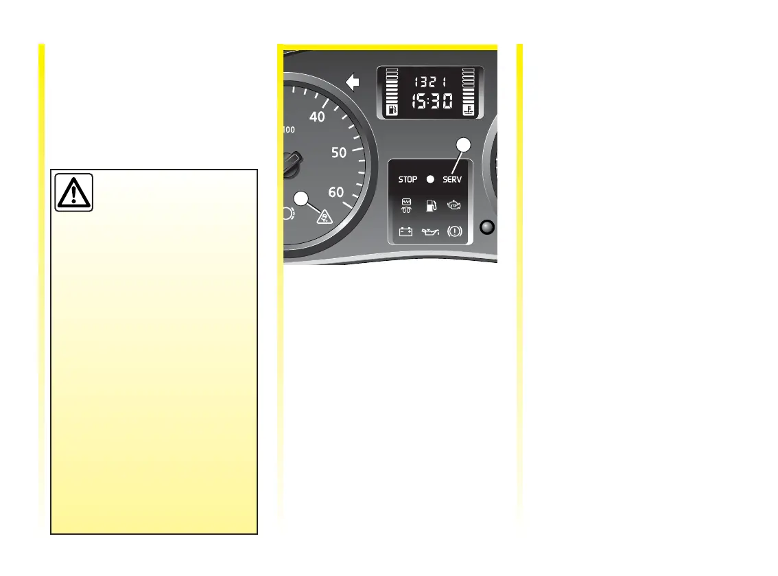 operating fault, warning lights 1 and