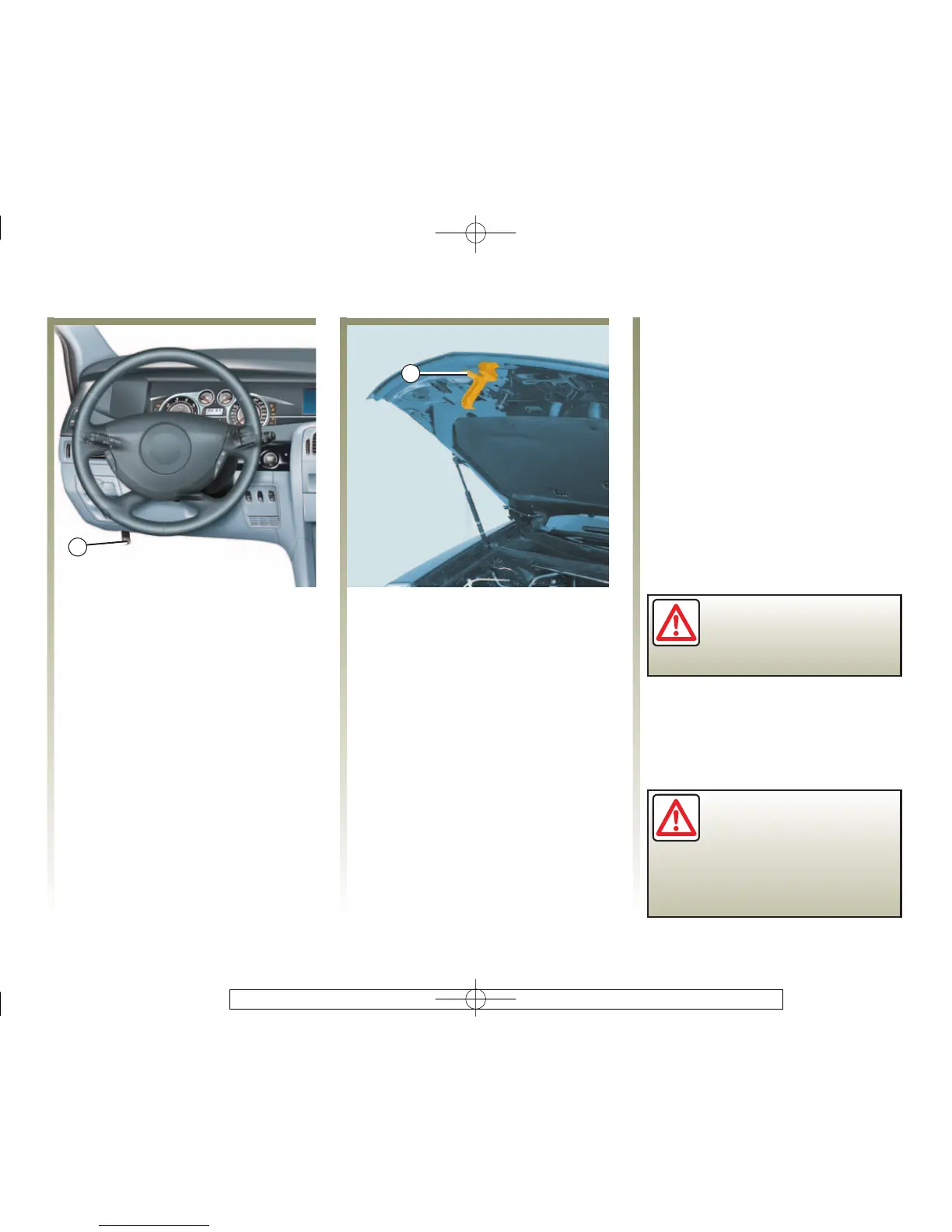To open the bonnet, pull handle 1. Bonnet safety catch
