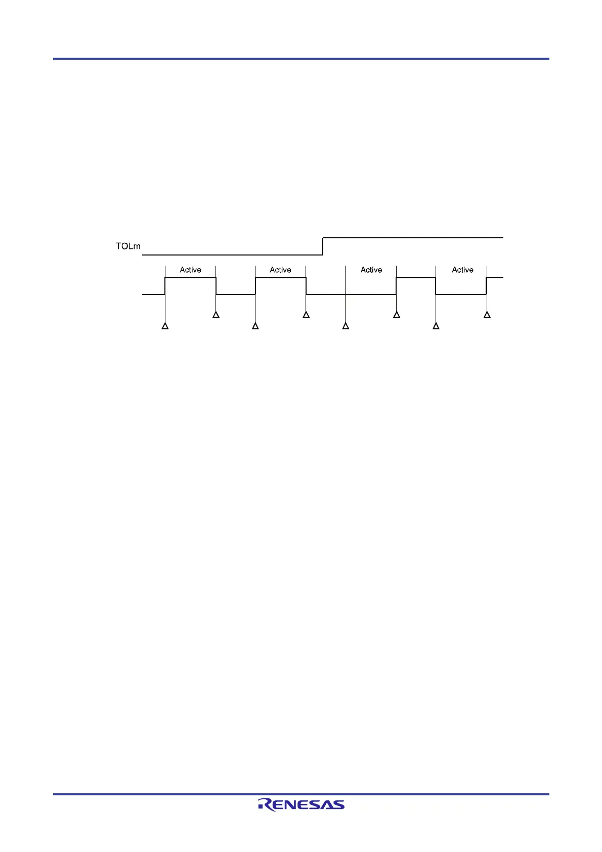 generation timing of the TOmn pin change condition. Rewriting the TOLm register does not change the output