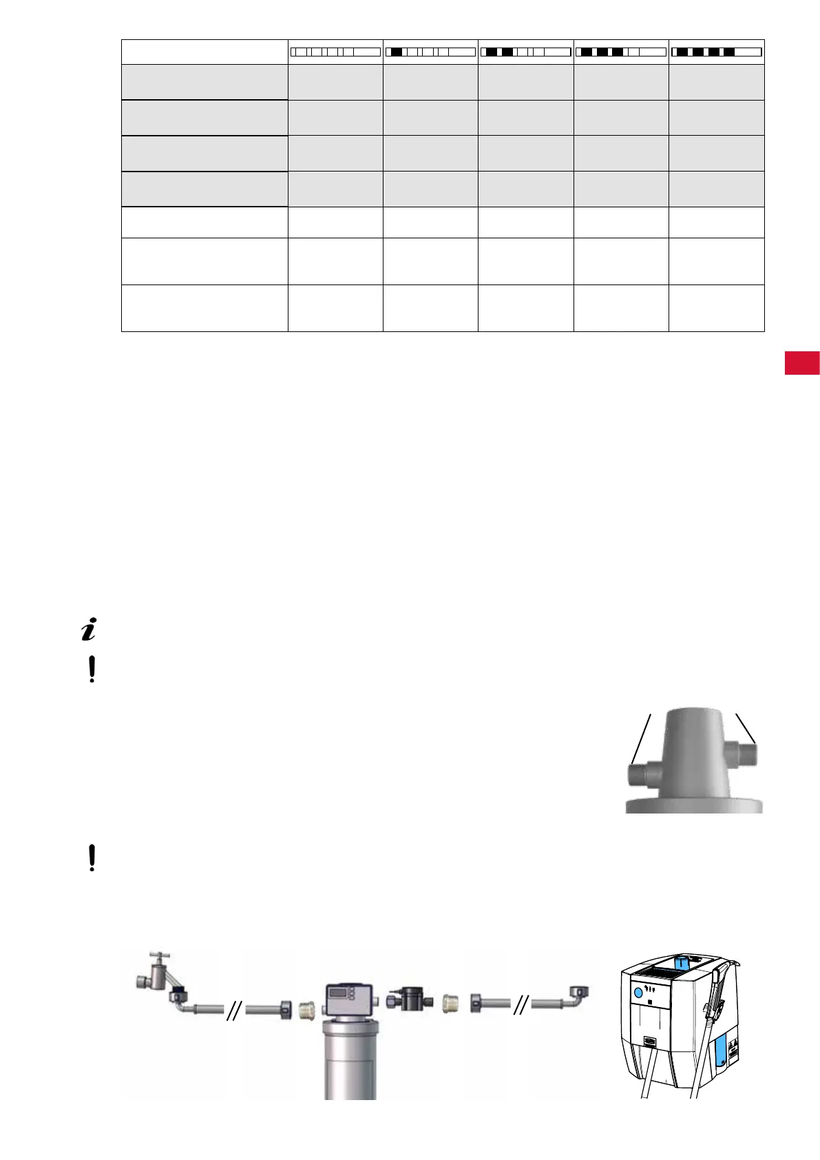 ⇒ 付属の水用ホースをフィルターヘッド入口のアダプターに接続し、水道に接続します。
