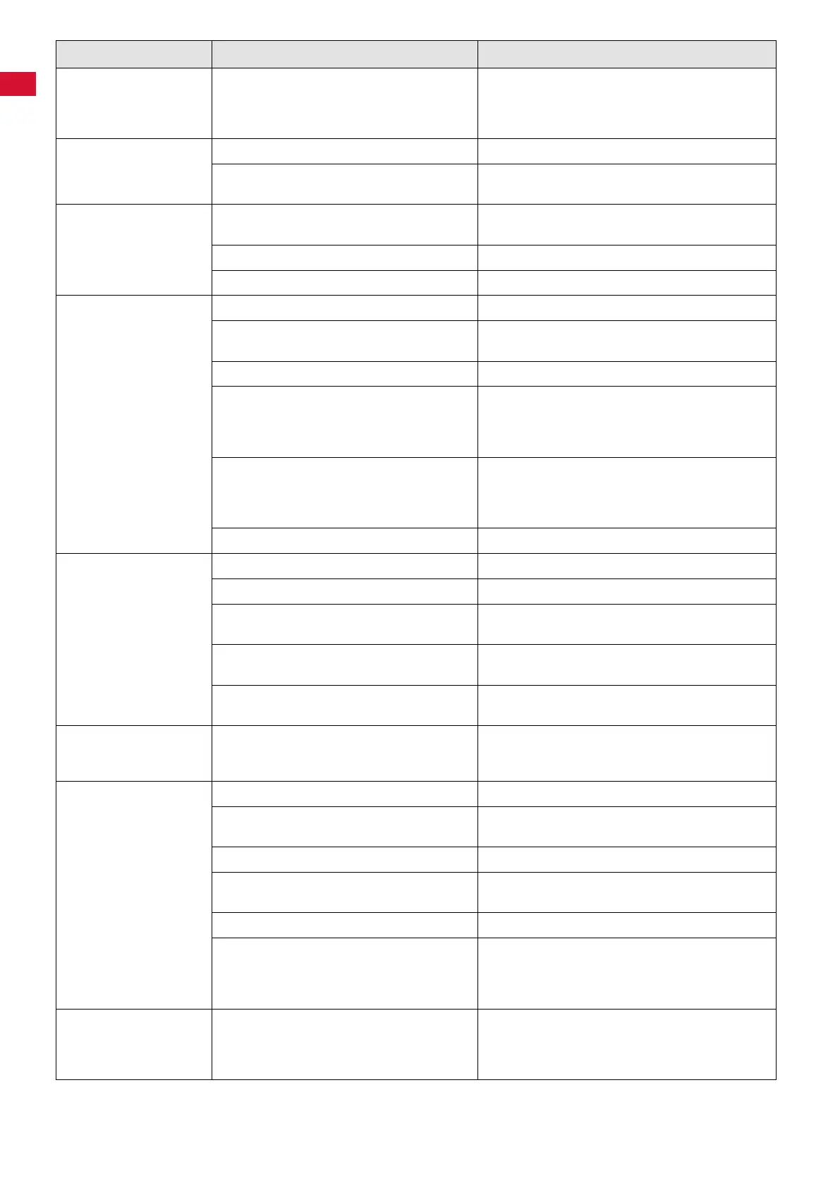 Error Possible cause Corrective action
