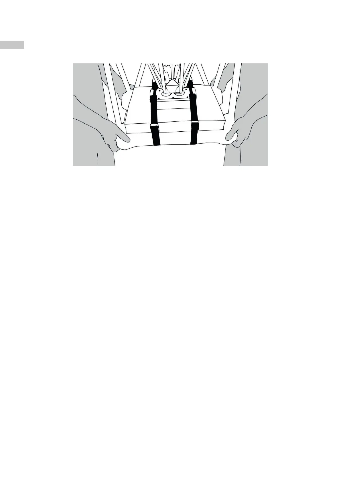 the support legs (4), or the three drive struts (e.g. by holding the orange protectors or any part of the drive