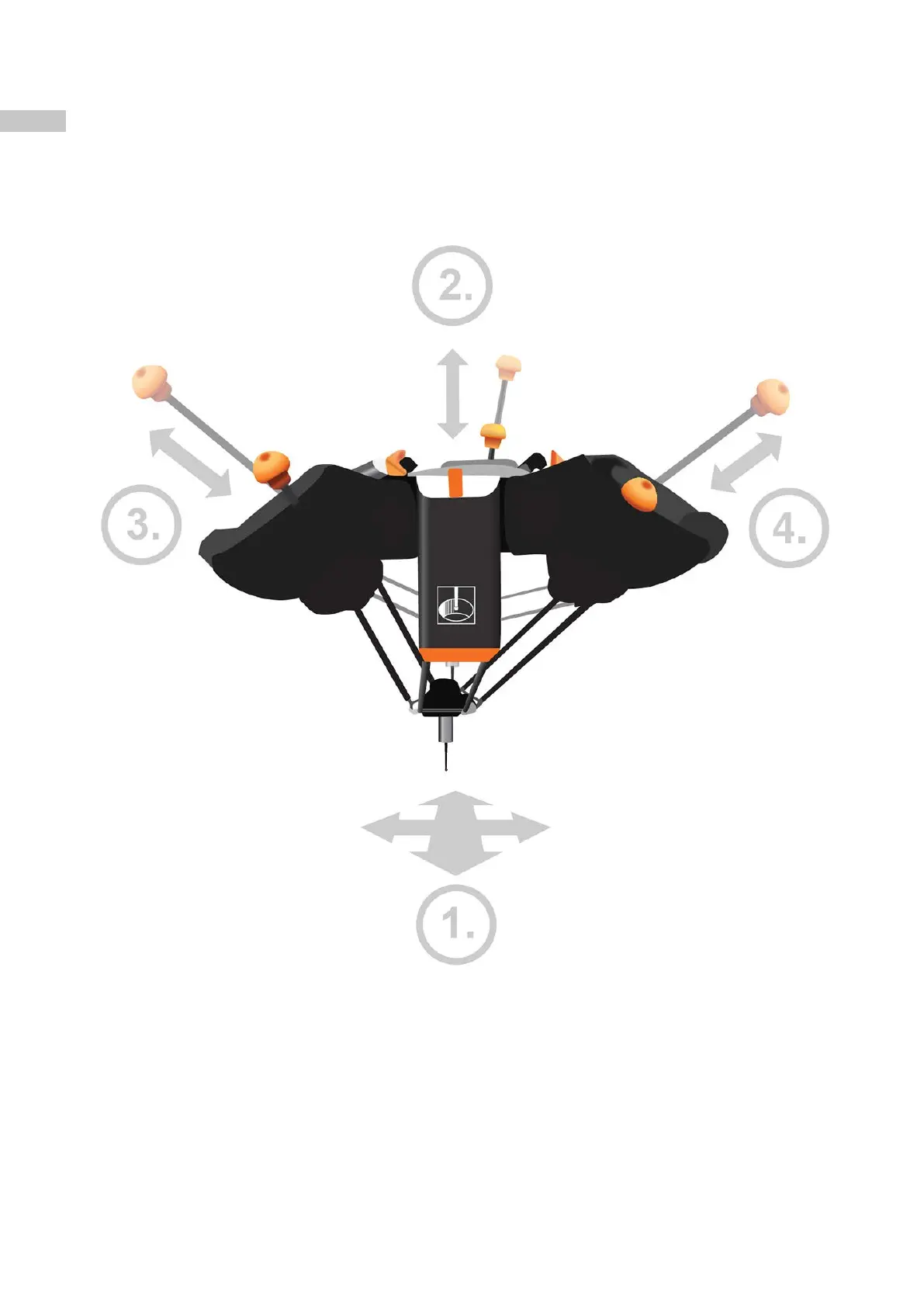 it registers the reference mark, starting with the strut at the back of the machine (axis labelled P).