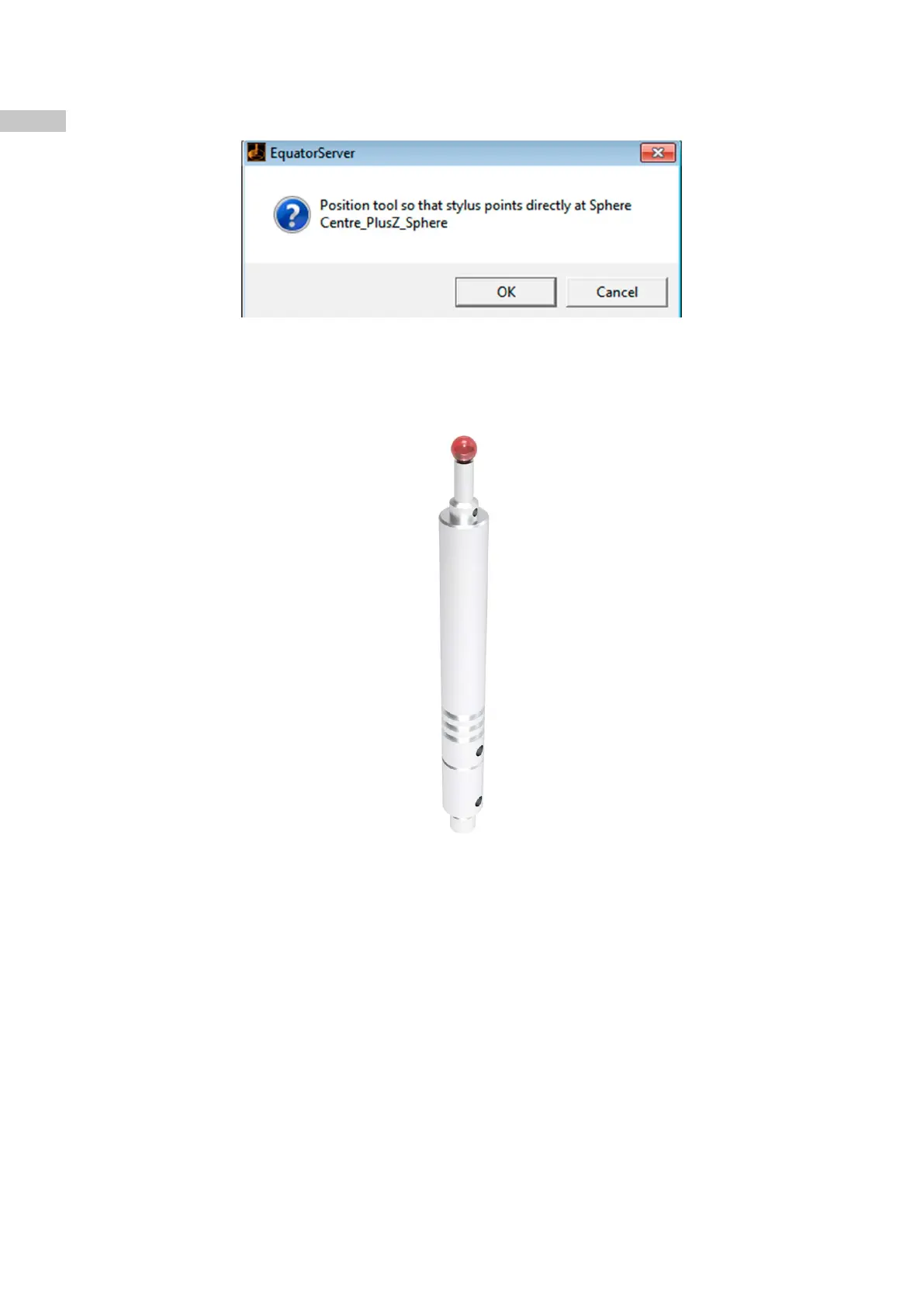 The following message is displayed (Position tool so that stylus points directly at Sphere Centre_PlusZ_