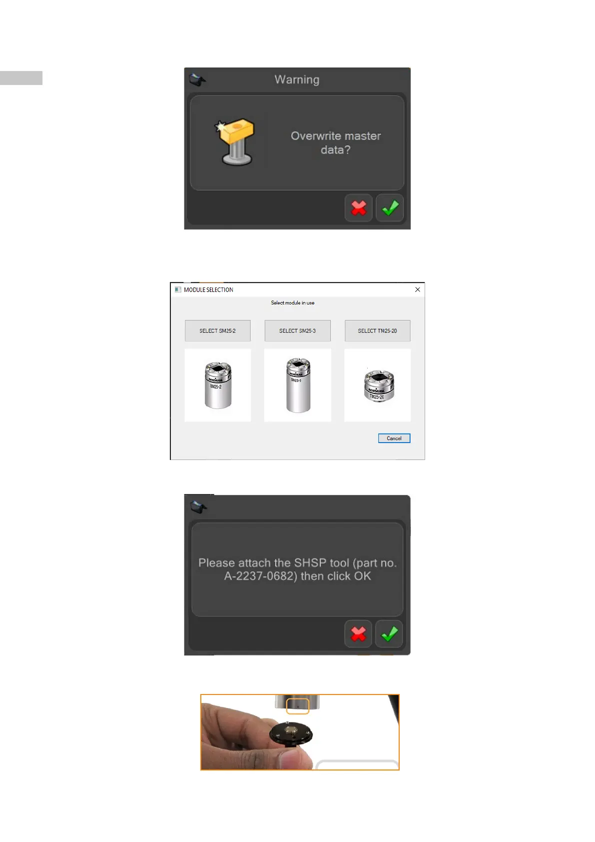 • The following message is displayed (Please attach the SHSP tool (part no. A-2237-0682) then click OK).