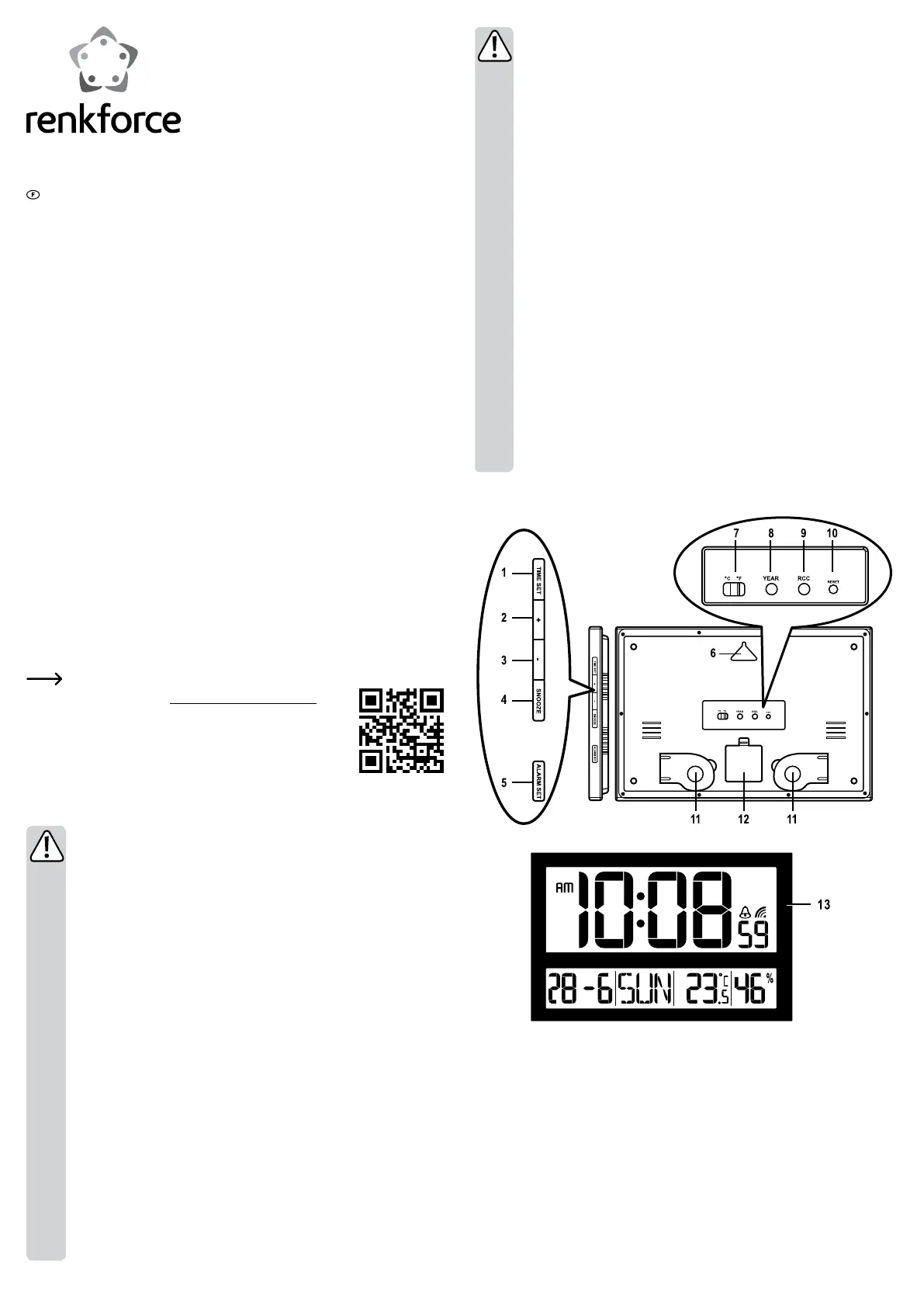 l'intérieur et l'hygrométrie. Grâce au récepteur DCF intégré, l'heure, la date et le jour