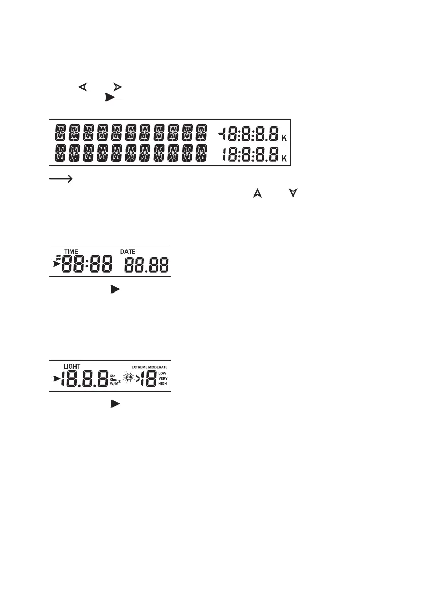 The display will automatically switch after a few seconds. Use the " " (1) or " " (2) buttons to manually switch