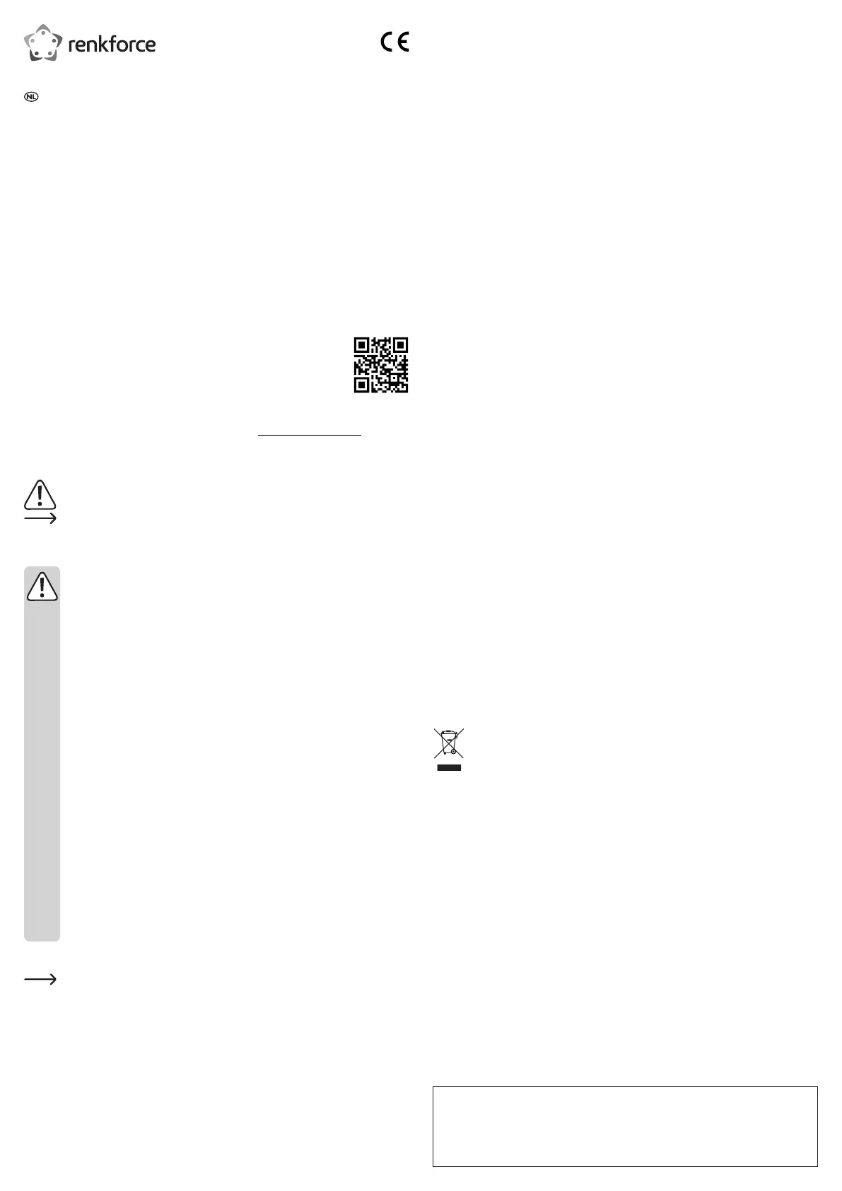Download de meest recente gebruiksaanwijzing via de link www.conrad.com/downloads of scan de